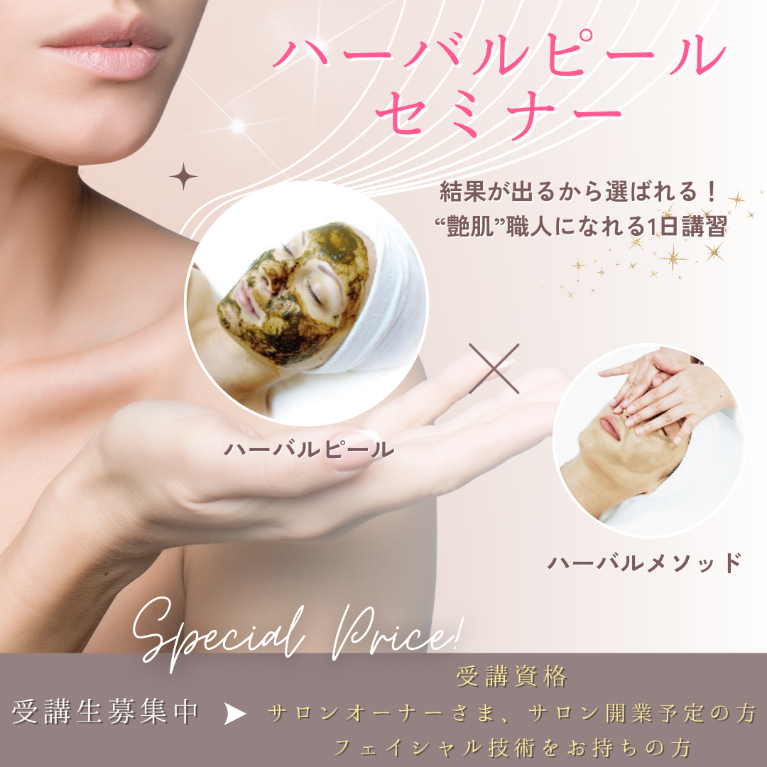 植物由来のハーブを使った肌再生技術「ハーバルピール」を学ぶ講座です。 しわ・たるみ改善など年齢肌ケアの施術方法はもちろん、お客様に安心して受けていただくためのダウンタイムゼロのテクニックまでしっかり習得できます。 初心者の方も安心して学べる内容で、受講後はすぐにサロン導入可能。 あなたのサロンメニューに“結果が出るハーブ施術”を加えるチャンスです✨